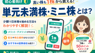 単元未満株・ミニ株とは何かを初心者向けにわかりやすく解説。1株投資の仕組み、メリット・デメリット、配当や株主優待、マネックス・SBI・楽天など証券会社ごとの特徴までまとめました。