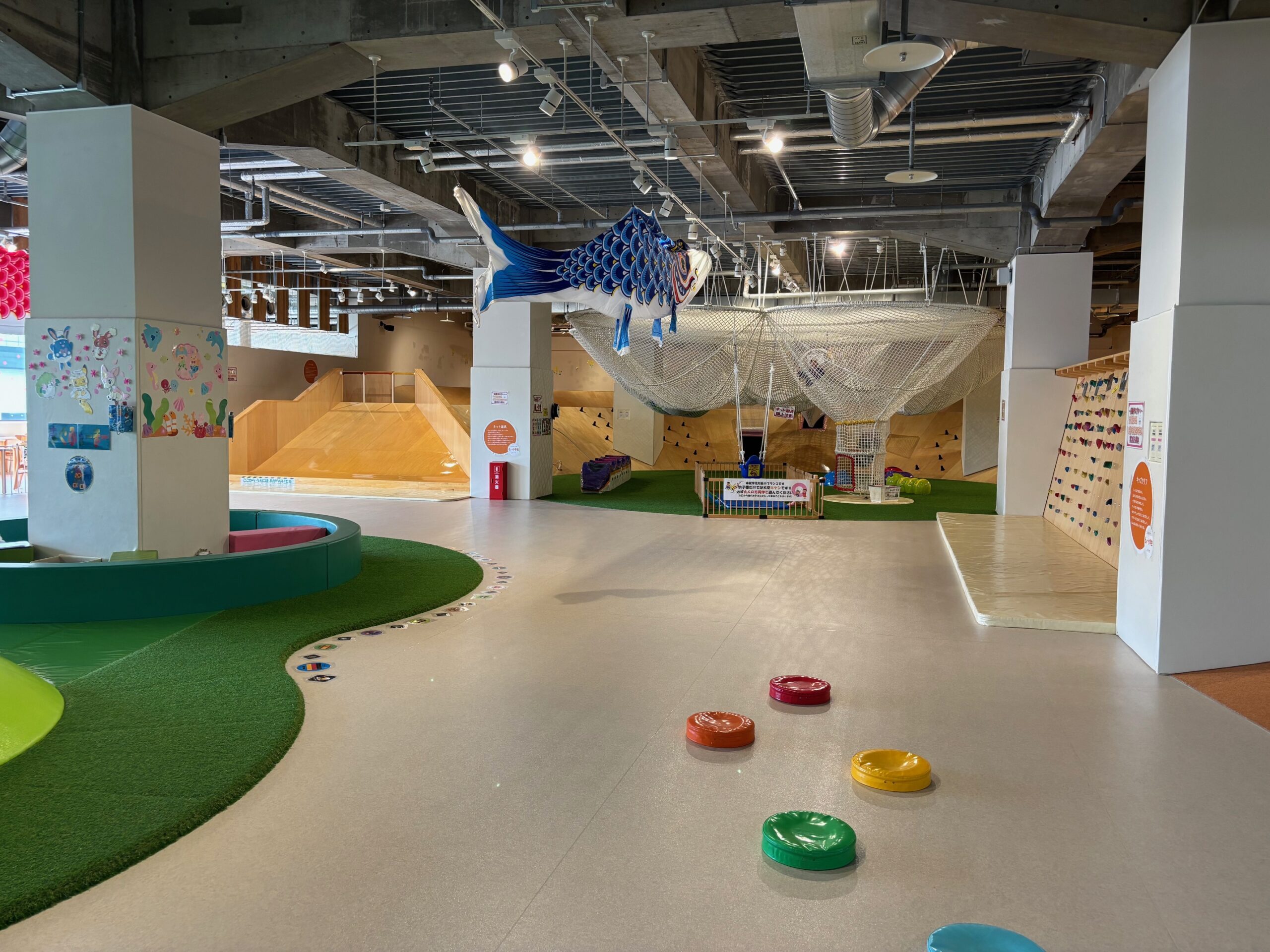 館内には学びの広場やキッズアトリエもあり、体を動かすだけじゃなく、少し落ち着いて過ごせる場所もあります。元気に遊びたい子も、じっくり遊びたい子も、それぞれ楽しみやすい施設です。